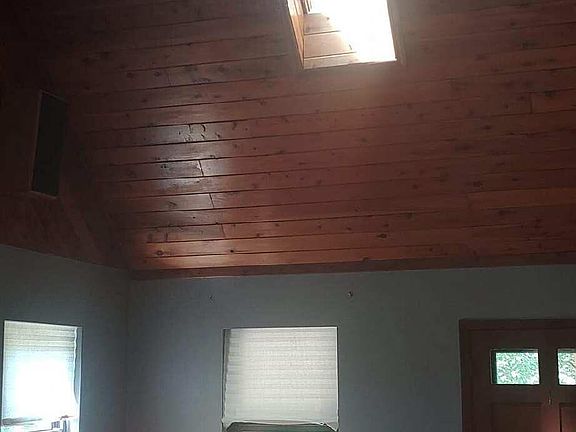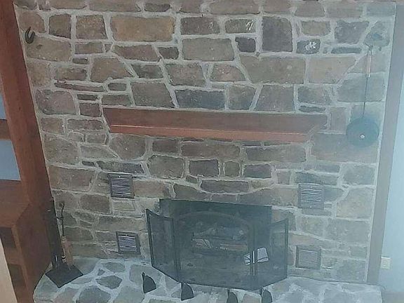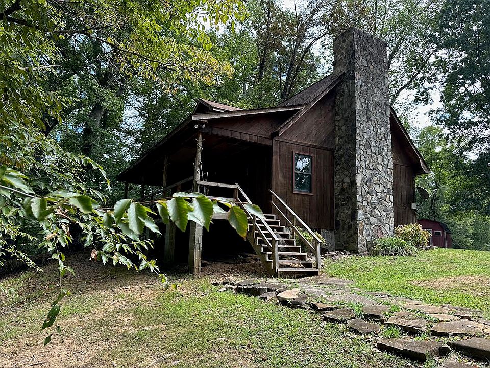 A frame house with 1400 sq. feet has a loft bedroom, open living room with cathedral ceilings, knotty pine tongue and groove, Full mountain stone fireplace, dining room, and all the appliances in the kitchen. There is a wraparound porch to enjoy the abundance of wildlife around.