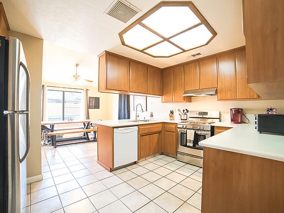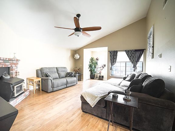 BACK ON THE MARKET by no fault of property or seller! Located in a desirable, well-manicured neighborhood, this home is sure to exceed your expectations. With 3 bdrms, 2 full bthrms, 1,465 sq ft of living space & upgraded, low-maintenance Pergo flooring (spare planks & t-pieces included), the property offers a perfect blend of comfort, style & functionality. A standout feature is the 7.5kW solar system. NO SOLAR LEASE or equipment rental costs, just big energy savings! The home includes central heating & a woodstove insert, a newer central air system, a newer roof, a spa (ready to be wired & connected for your ultimate relaxation), AND four wall-mounted TVs, offering entertainment right from the start! A quality security system with multiple cameras also stays with the home (buyer to open account with the security provider.) The property boasts a well-appointed kitchen with Corian counters & ample storage space! The included fridge & microwave make moving in a breeze. The rolling cutting board underneath the microwave adds convenience to your culinary endeavors! Vaulted ceilings create an open feel & an enclosed back patio offers a versatile space for your needs. Other notable features: walk-in closet in the 2nd guest room, ceiling fans, and a permitted bonus space off the primary bdrm (per Seller, bonus space adds approx 100 sf.) The property provides a .14 acre lot with a zeroscape front lawn and an attached 2-car garage! Storage isn't an issue here, as the garage features plenty of cabinet space, along with a finished ceiling! From its spacious bedrooms, full bathrooms, energy savings, refrigerator, spa, and televisions, it will be difficult to find a more complete package! Don't miss your opportunity to call this home your own!