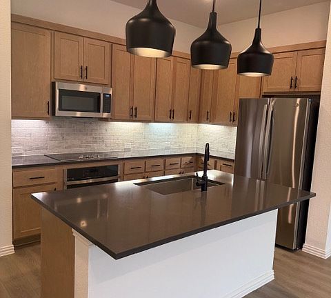 This beautiful end-unit townhouse is a brand-new construction offering modern living in a prime location. With 3 bedrooms, 2.5 bathrooms, and a spacious 2-car garage, this two-story home is designed for comfort and convenience. The modern kitchen features luxury upgrades including solid surface countertops, luxury vinyl flooring, an eat-in island, walk-in pantry, and all-new stainless steel appliances fridge, oven, microwave, dishwasher, washer, and dryer are all included.