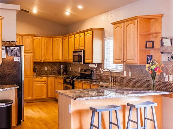 Rare find on the Redlands with over 2600 sq ft. and 5 bedrooms plus an office (office could be 6th bedroom) This 5 bedroom, 3 bath, 3 car garage (with built in storage) has so much to offer. It has hardwood floors, granite countertops, tiled bathrooms, gas fireplace, built-in entertainment centers upstairs and in the basement. New carpet in basement along with vinyl flooring. You'll love entertaining on the huge 26x15 covered deck or enjoy a summer evening by the fire pit. Enjoy living in this wonderful Redlands ranch home w/basement that's ready for you to move-in. There is a large master retreat on the main level with walk-in tiled shower & walk-in closet. This home is great for entertaining with upstairs & downstairs living areas, the kitchen & dining room area open to the incredible East facing deck with views. Professionally landscaped on a quiet no-through street with cul-de-sac.