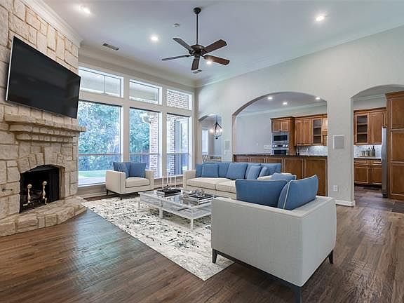 Holmes built custom on creek lot walking distance to Andy Brown Park & The Core in Coppell ISD! Brick w embedded stone, gas lanterns & solid mahogany front door. Fresh painted walls & trim, newly finished hand scraped hardwoods, slate floors & crown molding throughout. Enjoy Austin stone fireplace overlooking large yard & creek from covered porch. Updated kitchen features granite counters, marble backsplash & professional 36 gas cooktop, dbl ovens, wine fridge, filtered water & Brizo faucet. Updated owners Suite boasts marble floors, free-standing tub & herringbone tile. Office & utility w sink down. 3 BRs w private bath & WICs, & large game room up. Oversized garage & walk-in attic. 2 newer AC systems.