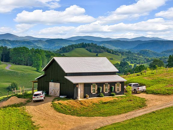 An enchanting working farm nestled in the foothills of the Appalachian mountains with stunning views that will take your breath away! The perfect blend of life on the farm and a serene setting surrounded by all the natural beauty and commanding views of Watauga Lake silhouetted by the Cherokee National Forest. The Wow factor surrounding this property is simply amazing! The brand new, custom-built, modern farmhouse features soaring ceilings with walls of windows to absorb pastoral views from every room. Over 2,900+ sq ft of one level living with lavishly appointed amenities such as hand hewn beams on the fireplace and hood, stone antique sinks, antique doors, bleached antique vanities and beautiful hardwood floors throughout. A gourmet kitchen with top-of the-line luxury appliances, including an ILVE European range, Viking microwave, large walk-in pantry with appliance garage and an immense island that will rival any seen before. Offering plenty of privacy, the split floor plan provides a master suite on one wing of the home and two additional bedrooms with en-suite baths on the other. Showcasing the home is the expansive covered back porch with a picturesque view that provides a peaceful, serene, even mesmerizing experience. Included within the gates are over 45+ acres of rolling, fenced pasture, three barns, a chicken coop, shed and an historic GI Farm Shop. After WWII veterans from the area who wanted to learn about farming attended an Ag school in the GI FARM SHOP. The building, roughly 1900 square feet, has a workshop in the front where they would learn the mechanics of farming and farm implements. The back was a classroom space for instruction in the science of farming. The building now serves as a workshop with concrete floor and is perked with the ability to add a 1BR/1BA with kitchenette to accommodate an AirBnB, farm manager or caretaker cottage. Unlimited potential for creating a private retreat, venue or investment property with ample space to add small cabins. Idyllic location with close proximity to four vineyards, several surrounding marinas on Watauga Lake where you can enjoy water sports and fishing. Ski resorts nearby in Boone and Banner Elk, and hiking, biking and ATV trails for the outdoor enthusiasts. Centrally located within short driving distances to the Tri-Cities, Abingdon and Boone that offer all the conveniences. To provide a turn-key experience, the majority of furnishings are able to convey with an acceptable offer. All the work has been done for the next owner to step in, sit back and simply enjoy the beauty of life on the farm!