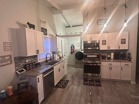 Central airModern kitchen cabinetryWood beam vaulted ceilingsBeautiful granite countertopsNewly remodeled homeSpacious backyardStainless steel kitchen appliances