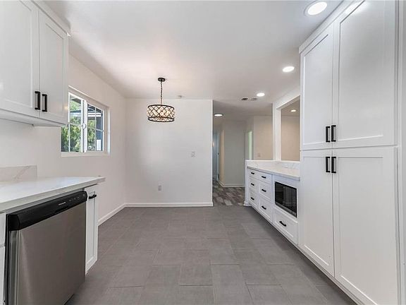 Newley remodeled home featuring 4 spacious Bedrooms and 2 full Baths. Home is light and bright with an open floor plan. Family room w/recessed lights, fireplace with mantle, sliding glass doors to the backyard and wood-grained vinyl flooring. Home features a newly Remodeled kitchen w/recessed lights, white solid wood shaker cabinets, pantry, quartz countertops, Frigidaire stainless steel appliances which include a 5-burner gas range w/ventilation hood, microwave, refrigerator and dishwasher; plus, a breakfast nook. Dining room w/new chic lighted ceiling fan and wood-grained vinyl flooring. Generously sized primary suite w/modern lighted ceiling fan, dual access walk-in closet and wood-grained vinyl floors; plus, a remodeled en suite bathroom w/pedestal sink, dressing mirror w/sundry storage, custom tiled step-in shower, Bluetooth enabled exhaust fan and custom tiled floors. 3 additional bedrooms w/windows, 1 w/sliding glass doors to backyard, ample closet space, 2 w/mirrored wardrobe doors and wood-grained vinyl floors. Remodeled guest bathroom w/vanity, sundries/linen storage, custom tiled tub/shower, Bluetooth enabled exhaust fan and tiled floors. Home includes an Indoor laundry area with stackable LG washer/dryer. New door hardware throughout. Updated electrical panel and solar panels to lower your overall utility costs.