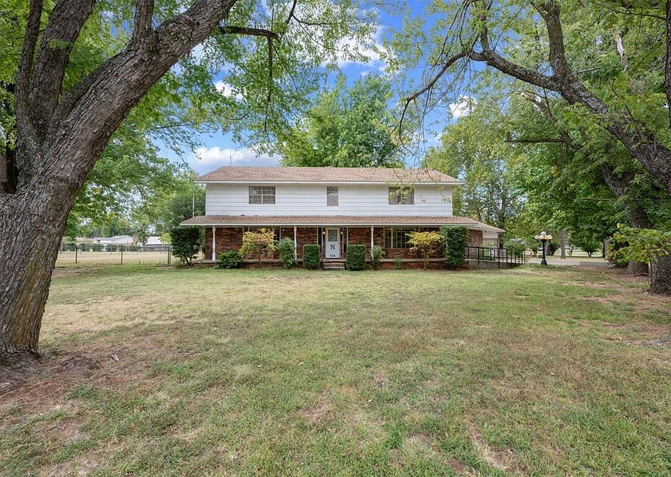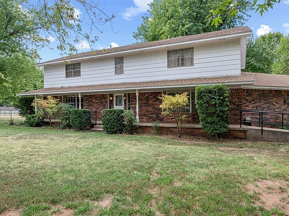 This spacious 5-bedroom, 3.5-bath fixer-upper is located on a quiet street near Sarah Road in Mustang, Oklahoma, offering ample potential for customization. With 4,000 square feet of living space on a generous 1.12-acre lot, this two-story home is perfect for those seeking room to grow. The main level features a large den with a cozy fireplace, a kitchen with tile floors, laminate countertops, a pantry, and a breakfast bar, along with a laundry room for convenience. The primary bedroom, also on the main floor, includes carpet flooring, a oversized closet, and an en-suite bath with an oversized tub and tile floors. A formal living room, formal dining room, and half bath. Upstairs, you'll find four additional bedrooms and two more full baths, providing plenty of space for family or guests. Outside, a large porch and patio overlook the fenced backyard, shaded by mature trees. Located in the highly desirable Mustang school district, with easy access to Mustang Elementary, Middle, and High School, this home presents an ideal opportunity for families looking to personalize their next home.