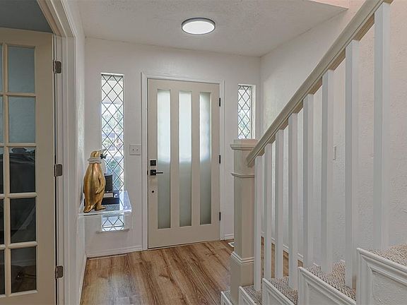 This home is the perfect site for a lifetime of memories. Originally a custom build, the unique layout masters dedicated space and storage with ease. Now, reimagined with modern touches, luxurious detail and additional function, everything you need is at your fingertips. You're welcomed by an expansive staircase with custom woodwork and the warm tones of a spacious living area with bonus room. Used as a living area or optional bedroom, the hideaway adds an element of imagination and flexibility. Primary suite is tucked away for privacy and boast two walk-in closets plus a full en suite. Open concept kitchen has oversized quarts island with breakfast bar, dry butler's pantry complete with microwave. All secondary bedrooms are upstairs. Paired on either side of the stairs, each bedroom has a generous walk-in and access to a shared full en-suite. No space is wasted with open desk in the breezeway and additional closets. A perfect collaboration of classic and contemporary, this home has upgrades inside and out. Energy upgrades include new windows and tankless water heater. Resting on more than an acre, you'll love the fully fenced and gated courtyard with powered shed, fenced backyard with open patio, installed grill, covered porch and storm shelter. Live in luxury without the city. Call for your private showing.