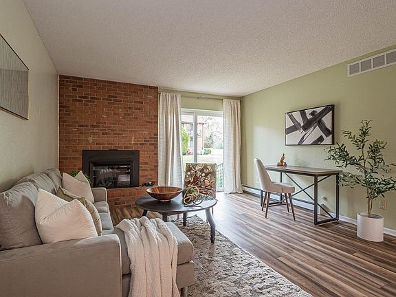 Welcome to your new home in the heart of Grand Junction's thriving north area! This charming condominium offers the perfect blend of convenience, and comfort with easy access to shopping, parks, the airport, and the hospital. As you step through the front door, you're immediately greeted by the enticing wood laminate flooring and the inviting ambiance of a rustic brick, electric fireplace. Venture outside through the sliding glass door onto your private patio, where you can unwind and enjoy the views of the well landscaped common area, complete with mature trees and lush greenery, making a nice retreat right out your doorstep. The seamless flow from the living area to the dining space creates an open and inviting atmosphere. Just steps away, the kitchen awaits, featuring granite countertops, aesthetically pleasing cabinetry, tile backsplash, and a suite of modern appliances including a dishwasher, electric range, and a built-in microwave making meal prep easy. Adjacent to the kitchen, you'll find the convenient laundry room, complete with shelving for your storage needs. This condominium has two bedrooms, including a secondary bedroom with its own private full bathroom. The large primary suite offers a peaceful and private area, complete with three closets for ample wardrobe storage and a three-quarter en-suite bathroom featuring a separated vanity and walk-in shower. Outside you’ll have your own additional storage space and parking spot in the community car port. Additionally heating is included in HOA dues. If you are looking for quiet and convenient condominium living, this is it. Don't miss out on the opportunity to make this your new home. Schedule your showing today and experience all that this delightful condominium has to offer!