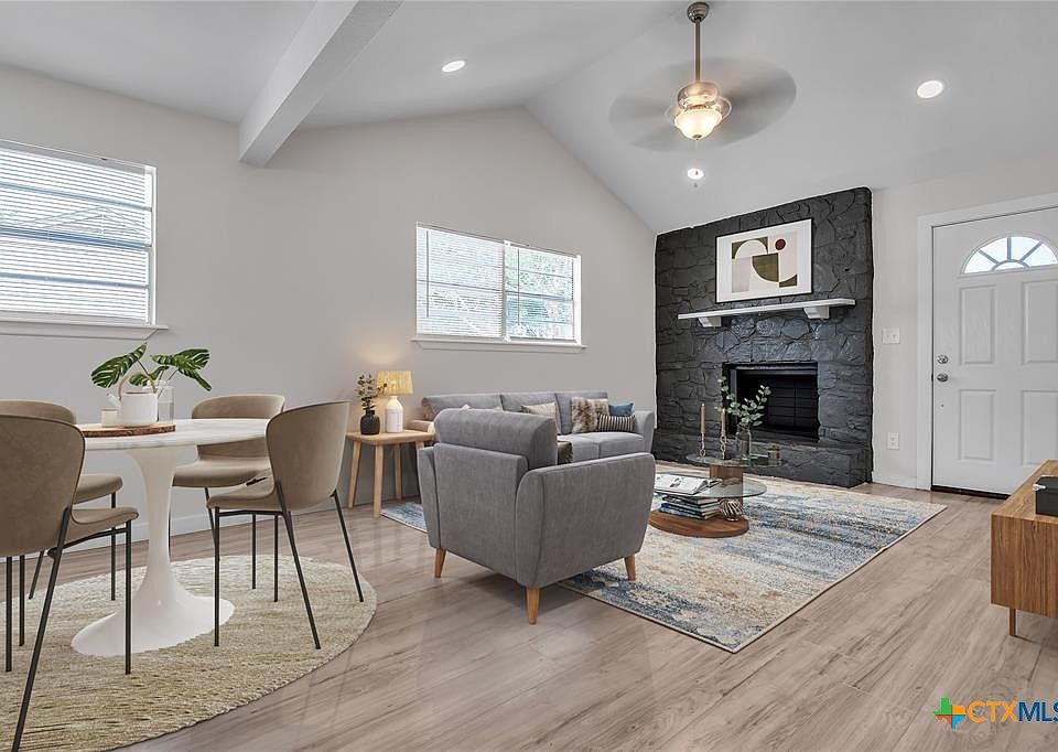 Beautifully remodeled income-producing duplex! This single-story property is move-in ready, with one unit leased to reliable tenants and the other side vacant so you can move in or rent it out. Perfectly positioned just 1.5 miles from Texas State University and 2 miles from the vibrant energy of The Square in downtown San Marcos. Both 2BD/1BA units have been thoughtfully updated with stylish, matching interiors that truly set them apart in the rental market with higher rents. The open-concept living and kitchen areas feel bright and expansive thanks to vaulted ceilings, recessed lighting, and striking stone fireplaces that add warmth and character. Durable wood-look laminate flooring runs throughout, paired with tile in the bathrooms for easy upkeep. Each kitchen is outfitted with modern flair—quartz counters, stainless steel appliances, slide-in gas ranges with designer vent hoods, bar-style seating at the peninsula, and ample storage. All bedrooms include walk-in closets, while the bathrooms feature updated finishes like quartz countertops and showers with stylish designer tile to the ceiling with niche. Each unit has its own laundry setup off the kitchen and a small, private fenced yard with a patio—perfect for enjoying the outdoors. Ideally located right on the university shuttle route and across from a neighborhood grocery. With quick access to I-35, you’re just 30 minutes from Austin and an hour from San Antonio, right in the heart of the Central Texas corridor. A smart investment in a sought-after location—book your showing today!