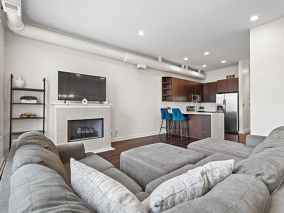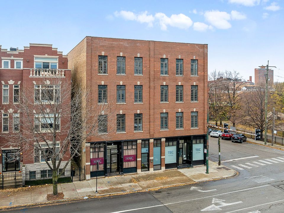 Freshly updated 3-bedroom, 2-bath penthouse that offers roof rights, 12' ceilings bringing in a lot of natural light, and a bright, open-concept layout. The main living space features a large living room, separate dining area, and a fireplace. The updated kitchen is finished with beautiful cabinetry, newer quartz countertops, and stainless steel appliances, providing a streamlined and functional kitchen. The primary suite includes a custom walk-in closet and a beautifully updated bath with modern finishes, a soaking tub, a separate glass-enclosed shower, and a large private deck that expands your living and entertaining options. With southern exposure delivering steady natural light and skyline views from the top floor, this home captures the best of city living. Finish out your private rooftop deck for instant equity and the best skyline views of the city. Additional features include garage parking included in purchase price, extra storage, in unit laundry, and immediate access to the Blue Line, major bus routes, and the dining and retail scenes of River West, Fulton Market, Wicker Park, and Ukrainian Village.