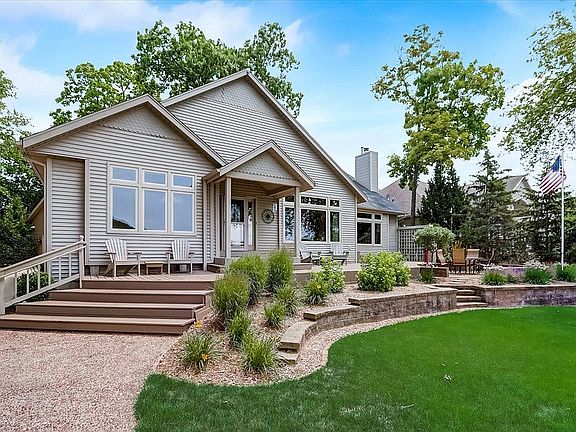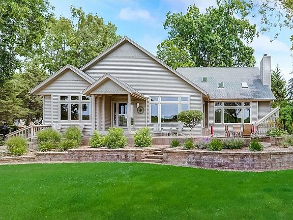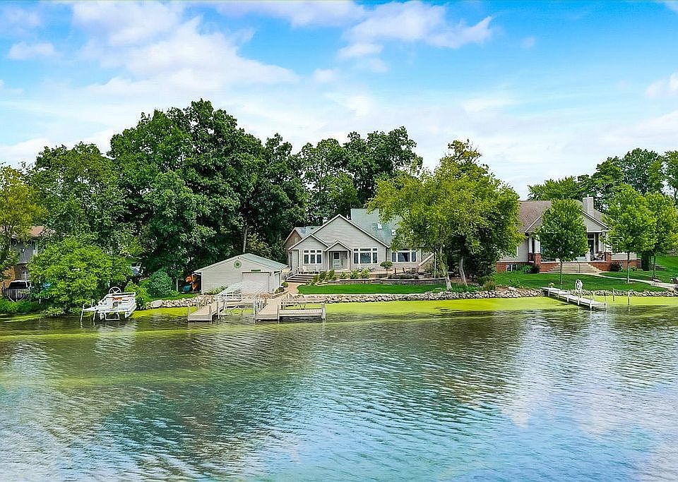 Impressive 5 bedroom, 3.5 bath Lake Home with 2 additional bedrooms in the basement w/egress windows. No expense was spared during the construction of this custom design built home on .51 acres. The kitchen hosts a chef's space w/granite countertops, high end stainless steel kitchen grade appliances, butler pantry, hardwood floors, vaulted ceilings, & new skylights. Large Living room w/vaulted ceilings, skylights, gas fireplace & a picture window overlooking the water. Enjoy a bright sun room that leads out to the deck overlooking the water for westerly lake views. Beautiful woodwork throughout. Central Vac; 8ft ceiling height in a finished basement. 4.5 car attached garage w/loft. Full house generator. 24x24 boat house. Master bedroom with en suite bath. Too many amenities to list.