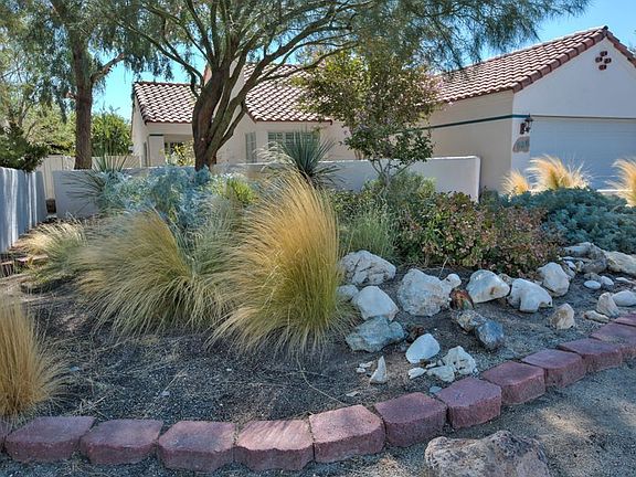 As soon as you step into the courtyard you will think you have entered a tropical paradise! Amazing remodeled home features xeriscaped yards & luxurious interior.Plantation shutters thruout accent open floorplan featuring travertine floors:living rm has cozy gas fireplace,high ceiling & potshelf.Opens to dining area & gourmet kitchen:Kraftmaid kitchen has granite counters w/travertine backsplash,ss appliances(Thermador oven w/glass cooktop,mw,dw,fridge)¢er island!Two pantrys,built in trash can,pull out spice rack.Leaded glass cabinet above sink.Down the hall is 1st guest bedrm w/fan,mirrored closet dr,&carpet.Carpeted mstr suite features spacious mirrored closet,patio drs to greenhouse.Sliding barn drs provide access to mstr bath w/granite vanity & solid surface shower.2nd guest bedrm follows.Guest bath w/tub & shower features vessel sink & soapstone counter.Laundry rm leads to finished garage.Full length 500 sqft passive solar greenhouse spans back of house w/access from kitchen & mstr suite:pond,dwarf citrus trees,vegetables,& flowers.Backyard has raised flower beds w/organic potting soil,flagstone patio, & paths to explore;automatic sprinklers. Dual cooling on ground.