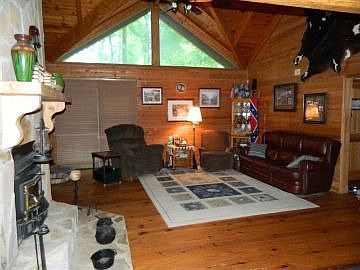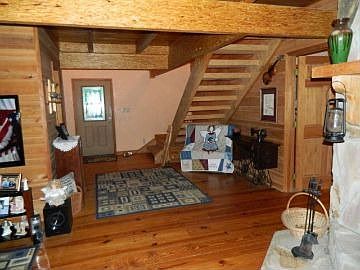 Enjoy the wrap around porch on this wonderful country home with beautiful wood details in and ceilings walls. Exposed wooden beams. Private 5 acres with back boundary on Little Tobesofkee Creek. Access road shared with neighbors. Sold as is. Very Private.