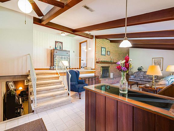 Welcome to your mid-century modern dream home! This stunning 4-bedroom, 3-bath beauty perfectly blends timeless design with today’s comfort & style. Step inside & fall in love with the bright, airy kitchen — the perfect spot to cook up your favorite meals & gather with friends. The great room is a true showstopper, featuring striking exposed beams & a cozy fireplace that invites you to relax on cool evenings. (Please note: the fireplace and woodstove haven’t been used in about 10 years.) Need more room to unwind or entertain? Head to the spacious family room or basement, then soak up the sunshine year-round in the cheerful 4-seasons sunroom. Outside, your park-like backyard is ready for both fun & relaxation — complete with a deck, above-ground pool, and mature trees that offer beauty and privacy on this nearly half-acre corner lot. Two storage buildings (including one for pool gear) convey with the property, adding extra convenience. Parking is easy with a 2-car garage & additional off-street paved parking. Stay comfortable in every season with efficient electric baseboard heating & central air conditioning — and yes, we’ve got the utility bills to show you how efficient it really is! This home is a lifestyle - ENJOY YOURS HERE!