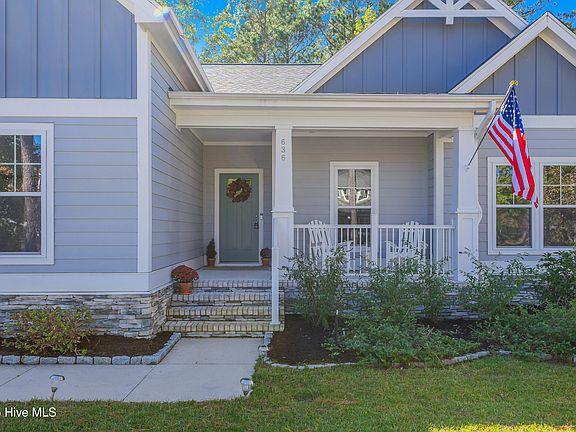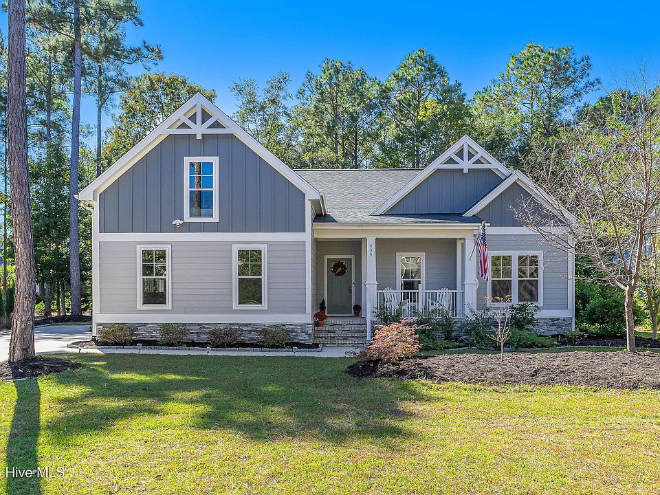 Built in 2018 by locally acclaimed Isenhour Homes, this 2,183 sq ft coastal retreat comes complete with the meaningful upgrades that make life easier, more efficient, and more enjoyable. A welcoming front porch leads to hand-scraped engineered hardwood floors, a flexible front office/bedroom, and a large living area with built-ins and a beautiful fireplace. The kitchen features quartz countertops, a tile backsplash, a generous island, gas range, and pantry. The dining room is bathed in natural light.