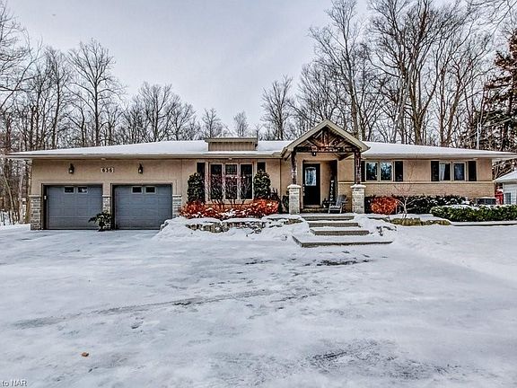 Located centrally between Grimsby, Smithville and Hamilton this beautiful home is a gem located within mins of everything you will need. The home sits on a 1.1 acre lot with quick access to Hwy 20. From the moment you pull into the driveway you will feel like you are home. The entrance is grand and welcoming with covered front porch and post and beam design. Once inside you will be greeted by a large formal dining room that has enough room to host gatherings around the dining room table that overlooks the front of the home. As you move further in the home you find the huge great room and a lg kitchen which has been updated with granite countertops, newer cupboards and a service area. A walk-in pantry and smaller storage pantry add to the storage of the kitchen. The huge living room has hard wood floors, vaulted ceilings and a natural gas fireplace. The great room offers huge windows that allow family and guests to look over the pool area and the expansive back yard areas. The sunken fam room that is currently set up as a gym opens to the deck and pool area. The main floor of the home also offers 3 of the 5 bedrooms. The main w/r of the home is large and offers room for all families. The master suite allows has an ensuite washroom with tiled walk-in shower and a makeup desk. The two other bedrooms across the hall are both large and inviting. In the basement of the home you will find a large fully finished space with 2 large bedrooms, a rec room large enough for any of your entertaining plans, maybe a pool table, ping pong, whatever your heart desires. The full bath in the bsmt also offers a soaker tub and walk in shower. The basement would easily double as an in-law suite. Outside the home offers a large double bay attached garage as well as a 2 bay garage that is drywalled, has 60 amp power and an attached workshop w/ wood burning stove. With a lot this size there is plenty of space for everyone in the family. This home does not disappoint.