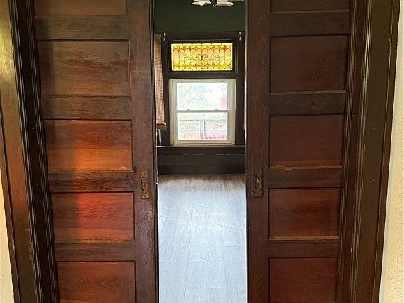 Fully fenced backyardOriginal woodworkStained glassPocket doorsBuilt in closetLarge kitchen layout