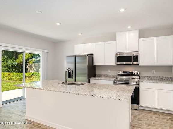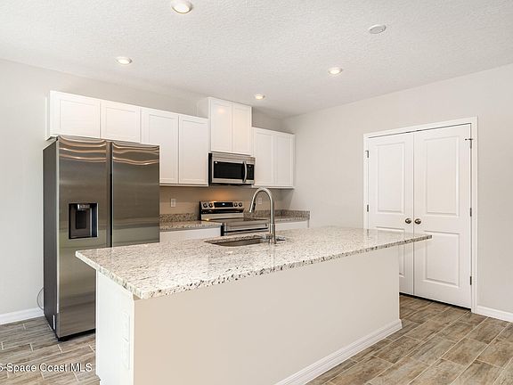 Enjoy the ease of low-maintenance living with wood plank tile flooring throughout. The primary suite includes a walk-in closet and a beautifully appointed ensuite bathroom with a walk in shower and double vanity. Three additional bedrooms offer flexibility for a home office, guest space, or growing family. Additional features include: Energy-efficient construction, modern finishes throughout, washer/dryer hookups and attached 2-car garage. Located in a quiet residential area of Port Saint John, this home offers quick access to schools, shopping, dining, and major roadways just minutes from KSC, Space X, Blue Origin, Port Canaveral and the beaches. Available for immediate move-in.