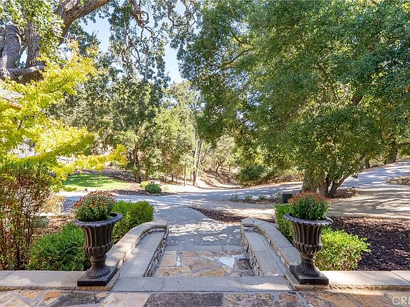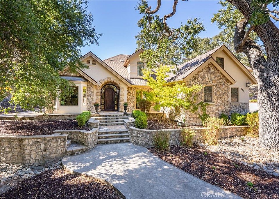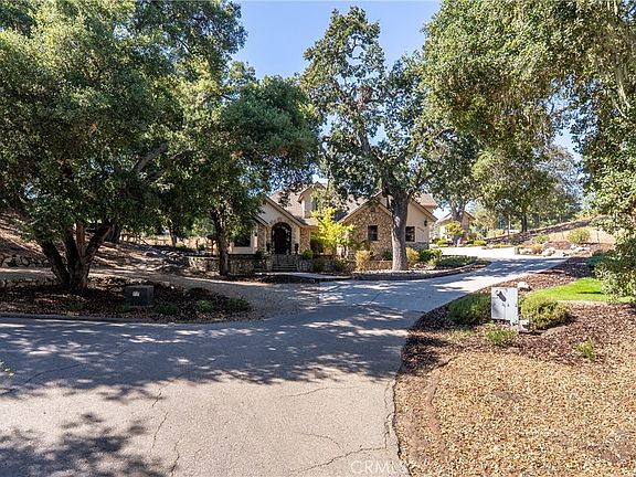 From the moment you arrive, this exceptional 3636 sf, 4 bedroom, 4 bathroom home makes a statement. The extensive exterior stonework and custom arched front door welcome you into a space where craftsmanship and comfort blend seamlessly. Step inside the grand entry with soaring 13-foot ceilings and travertine tile flooring that flows throughout most of the main level. Just off the entryway, a formal dining room with French doors offers elegance and versatility. Continue into the expansive living room, where natural light pours in through skylights and multiple French doors, and a wood-burning stove adds warmth and character. At the heart of the home, the chef’s kitchen is a dream come true — featuring granite countertops, stainless steel appliances, custom cabinetry with pull-out drawers and an attached wet bar complete with granite counters, a beverage fridge and built-in wine storage. It’s ideal for both everyday living and entertaining. The main floor office provides a quiet retreat with its gas fireplace, French doors and private patio access — perfect for working from home or a cozy library. The primary suite is truly a sanctuary, boasting a spacious sitting room with built-in bookshelves, a serene bedroom and a spa-inspired ensuite bath. Enjoy a jetted tub, dual vanities, a walk-in closet and a stunning rock-surround walk-in shower. Upstairs, you’ll find three generously sized guest bedrooms, two bathrooms, a flex room with built-in desk and loft bed plus a bonus room with cabinetry and plenty of space to customize — ideal as a playroom, exercise room or anything you need it to be. Step outside to your private backyard retreat: a covered patio with built-in BBQ, concrete countertops, sink, burners, beverage fridge, fireplace and mounted TV — designed for year-round enjoyment. As a unique bonus, the property includes a charming tiny home featuring A/C, kitchenette, bathroom and a loft sleeping area — perfect for guests, extended family or creative space. This home is nestled on 1.6 oak-studded acres on a private drive, offering a true sense of seclusion. Despite its peaceful setting, it's conveniently located near downtown Atascadero, with easy access to the freeway and local schools. This home feels like something out of a storybook — and now, it’s ready to be part of yours. Please review the Virtual Tour for additional information.