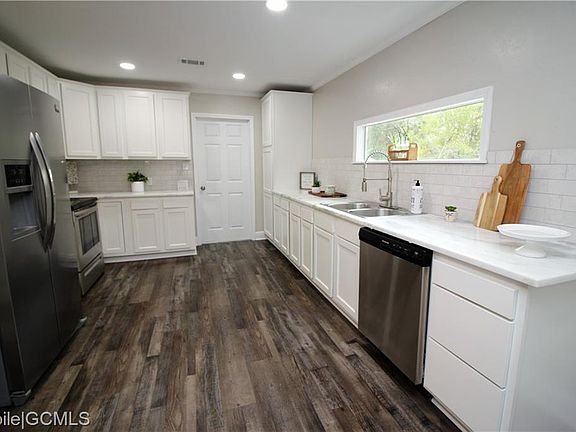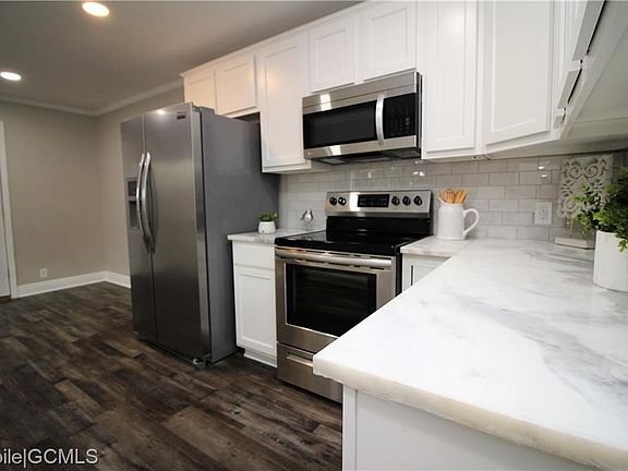 This move-in-ready 3 bedroom 2 bathroom home is in a convenient location for the Mobile area. Stepping inside from the front porch, you will notice the updated flooring and open living space. The kitchen has beautiful stainless appliances, granite countertops, and great cabinets for storage. There is also a side porch and back deck that would be fantastic for entertaining in your spacious backyard. This home is nestled on a private road but still close to shopping and the interstate. New roof and HVAC 2021 per seller.