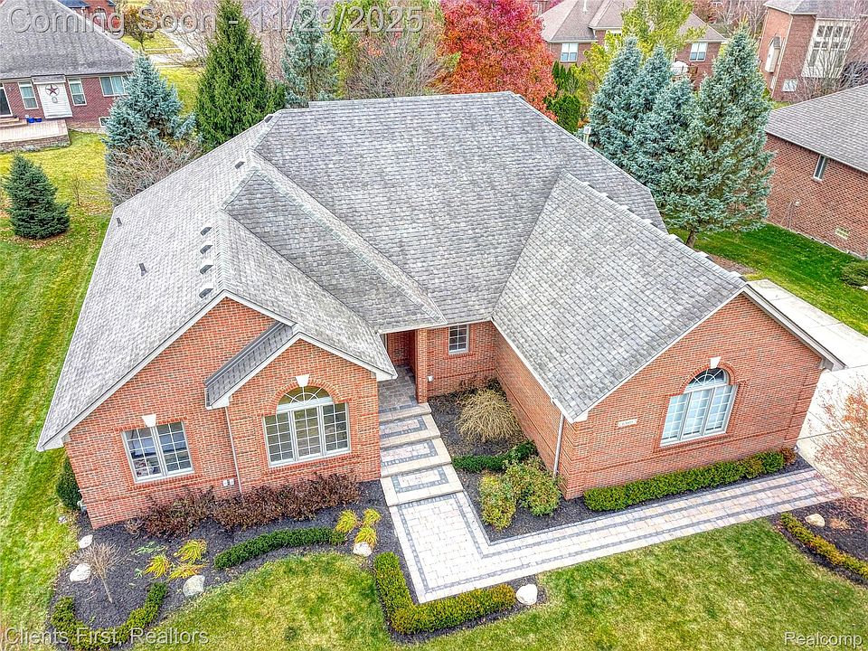 Experience luxurious single level living in this beautifully renovated all-brick ranch with a brand new roof!! Offering timeless elegance and modern comfort. This home features 4 spacious bedrooms, 3.5 baths, and a 3.5-car garage. Step through the grand entry foyer into an open floor plan with soaring vaulted ceilings and a stunning double-sided fireplace anchoring the main living spaces. Every detail has been thoughtfully updated from granite countertops throughout to light hardwood floors, new carpet, wainscoting, and designer finishes. The massive first floor office is perfect for remote work or study, while the first floor laundry adds convenience. The daylight basement impresses with 9-ft ceilings, a spacious recreation area, full bar, bedroom, full bath, and new carpet. Enjoy your private deck surrounded by natural light and serene views. The HOA provides effortless living with landscaping, snow removal, road and pond maintenance, and even holiday decorations at the main entrance. Furniture negotiable. Move right in and enjoy this refined, turnkey home!