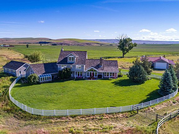 Modern farm house on 48 acres with Wallowa River frontage! 5463 sq.ft built in 1991 with 4 bedrooms and 3.5 baths. Great room with cathedral ceilings and large rock fireplace. Master bedroom with rock fireplace and patio doors. Master bath with Birthday Tub, walk-in shower and two sinks. Two offices. Three-car garage, 2464 sq.ft multi-use building, horse shed, chicken & green house. Irrigation water rights.
