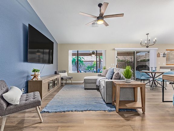 If you're looking for the perfect furnished home, look no more! Be amazed by this exquisite 3-bed rental property has to offer. Starting with a 2-car garage and RV gate. Interior showcases an inviting living room and a harmonious great room that overlooks the backyard. Wood-look flooring, high vaulted ceilings, and ceiling fans add to the gem's appeal. The kitchen provides white cabinets, stainless steel appliances, mosaic backsplash, and solid surface counters. The main bedroom won't disappoint, boasting outdoor access, an ensuite with dual sinks, a make-up desk, and a walk-in closet. You'll surely love the wonderful backyard, complete with a covered patio, putting green, enticing heated pool, and spa. This one-of-a-kind beauty is waiting for you. Don't miss out!