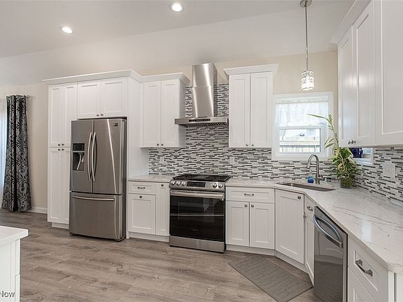 Welcome to this exquisite newer ranch home located in the heart of Brook Park, where modern living meets comfort and style. This beautiful property comes with a remarkable six-year tax abatement, making it an exceptional investment for any homeowner. As you approach, you’ll be greeted by a charming covered front porch that exudes a cozy and inviting atmosphere. The home features a two-car attached garage with a wider concrete driveway, offering ample space for parking and easy access. The front facade is adorned with custom stonework, adding a touch of elegance and curb appeal. Step inside to discover a stunning open-concept layout, highlighted by a beautiful kitchen that is a chef's delight. The kitchen boasts crisp white cabinetry, luxurious quartz countertops, and stainless steel appliances, providing both functionality and style. Natural light pours in, illuminating the newer flooring that flows throughout the home in neutral decor, creating a warm and welcoming ambiance. With ample counter space and a large coffee bar, this kitchen is perfect for both everyday meals and entertaining guests. The spacious family room and dining area are designed for comfort and gatherings, ensuring that you have plenty of space to relax and enjoy quality time with loved ones. The master bedroom is a true retreat, featuring a tasteful tray ceiling with elegant rope lighting that adds a sophisticated touch. The en suite bathroom is a spa-like haven, showcasing a beautiful custom shower that enhances your daily routine. Additional features include a tankless water heater, ensuring you’ll never run out of hot water. Step outside to the backyard, where you’ll find a covered patio that offers a private oasis for outdoor entertaining or quiet relaxation amidst the beautiful landscaping. This stunning ranch home is a perfect blend of modern amenities and cozy charm. Don’t miss the opportunity to make it yours—call today for a private tour!