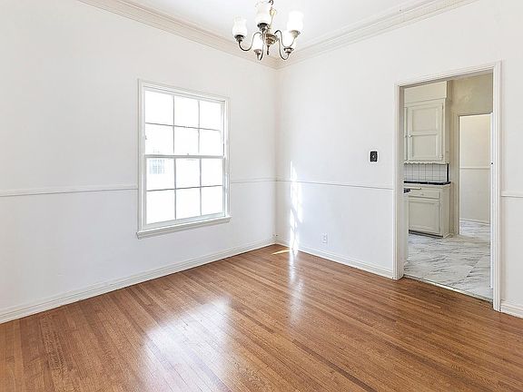 Classic charming 2 bedroom 1 and a half bath triplex unit with parking in Miracle Mile. Enter from front courtyard to expansive living room with white moldings and decorative mantle. Naturally lit and bright dining room leads to kitchen with complete original character, laundry area, and half bathroom. Upstairs 2 bright bedrooms with ample closets and one full bathroom. Hardwood flooring throughout, brand new thermostat, pet friendly, and super central location! Owner pays water, and sanitation. Tenant pays for electricity and gas. One parking spot included. Central heat & window A/C unit in bedroom.