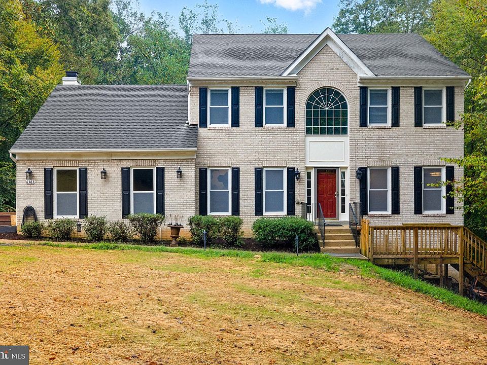 This beautiful home is nestled on a 1.26-acre lot, backing to trees with a seasonal view of Occoquan Lake. The main level welcomes you with a two-story foyer, recently refinished hardwood floors, a sun-filled office, a living room, and a formal dining room. The spacious kitchen features stainless steel appliances, a large island, pantry, and breakfast area, and opens to the inviting family room with a cozy wood-burning fireplace. French doors lead to the expansive deck, where you can enjoy privacy and tranquility in a retreat-like setting. Upstairs, the large primary suite offers a walk-in closet plus an additional oversized closet. The adjoining primary bath includes double sinks, a soaking tub, and a separate shower. Three additional bedrooms and a fully remodeled second full bath complete the upper level. Welcome home!