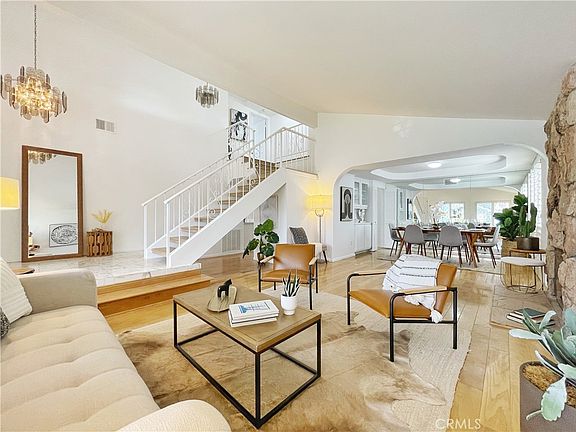 Welcome to this stunning two-story home on a quiet cul-de-sac located in the heart of Tarzana. This home features 4 bedrooms and 3 bathrooms with 2,357 square feet of living space. The well-designed floor plan includes a living room with a fireplace, a dining area, and a family room, providing ample space for relaxing and entertaining. A separate office a full bathroom, as well as a laundry area, are located on the main floor. The redone kitchen is sure to impress, featuring stainless steel appliances, beautiful quartz countertops, and a bar that extends into the family room. Upstairs, engineered wood flooring creates a stylish and durable surface for the three bedrooms. The primary bedroom suite is a true oasis, featuring a generously-sized walk-in closet and a mirrored sliding double-door closet, providing plenty of storage. The attached bathroom boasts a new tub and double sink vanity, creating a spa-like atmosphere for ultimate relaxation. The two remaining bedrooms share a full bathroom. The home's grassy yard is perfect for outdoor activities and includes a delightful patio and custom storage sheds. This property offers a two-car attached garage. Many upgrades include new copper pipes throughout, a new roof layer, a earthquake shut-off valve, new interior paint, quartz counters, and an alarm system. Turn-key, Move right in!