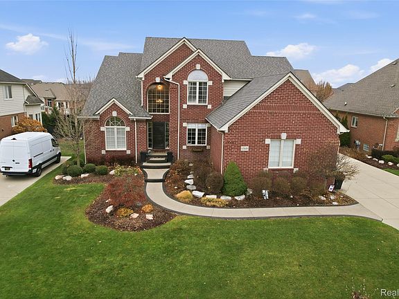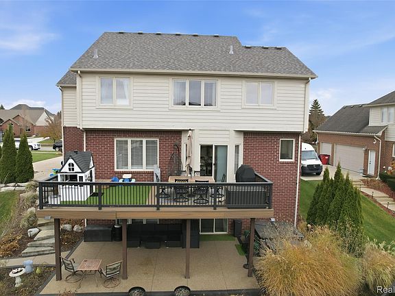 Welcome home to this exceptional Washington Township residence where timeless design meets true entertainer’s living. Eye-catching curb appeal and lush landscaping set the tone, while the backyard delivers a private resort experience with a stamped concrete patio and fire-pit, spacious Trex deck, turf play area, and a hot tub (negotiable). Step inside to discover beautiful hand-scraped hardwood floors (2016), extensive custom millwork and built-ins throughout, and a designer kitchen featuring custom cabinetry, granite countertops, and stylish backsplash (2016). A professionally updated library (2022) adds a perfect space for work, study, or relaxation. The home offers 4 generous bedrooms, including two with en-suite baths, plus a breathtaking primary suite with a luxury bath renovation completed in 2024. The fully finished walkout basement expands your living space with a full wet bar—ideal for entertaining or guest accommodations. A new roof (2018) provides added peace of mind. The oversized 3.5-car side-entry garage with extended driveway offers outstanding storage and parking. All of this is perfectly located in prime Washington Township, just a short walk to Gilcher-Crissman Park with trails, playgrounds, and sports fields, and within the highly regarded Romeo School District. Every inch of this home reflects thoughtful customization, superior craftsmanship, and pride of ownership—an opportunity not to be missed.