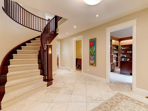 Welcome to 6365 Breckenridge Place your dream country retreat nestled on 2.5 picturesque acres in prestigious Kilbride. Premium location at the end of a quiet court backing on a peaceful ravine, part of a path free portion of the Bruce Trail. This serene and beautifully landscaped property offers a tranquil lifestyle with sweeping lawns, manicured gardens, an in-ground heated pool and a charming screened-in gazebo complete with a gas fireplace, TV and ceiling fan ideal for year-round outdoor entertaining. The custom pergola offers the perfect place to lounge next to the pool. Built by well known Brant haven Homes, this truly one-of-a-kind residence boasts approximately3,400 sq ft of thoughtfully designed living space with Craftsman-inspired details. Highlights on the main floor include a generous kitchen with solid maple cabinetry, an expansive island, stunning Cambria quartz countertops and heated travertine floors. The kitchen opens to a cozy solarium that steps out into the idyllic backyard and a family room that features a unique slate, copper, and maple fireplace. A custom library with wall-to-wall built-ins provides an ideal home office or reading retreat, and elegant formal living and dining rooms are perfect for entertaining. Upstairs are four well-proportioned bedrooms, including one with French doors that open to a second-floor deck which overlooks the pool and expansive green space. The main bedroom features his and hers walk-in closets and a spa-like ensuite. Additional highlights include a large three-car garage, 10,000-gallon cistern, an in-ground sprinkler system, an extra-long driveway, and a huge unfinished basement offering tons of storage and endless possibilities. All this, just minutes from scenic hiking trails, top-rated golf courses, and the natural beauty of the surrounding countryside. Dont miss your opportunity to own a slice of peaceful paradise!