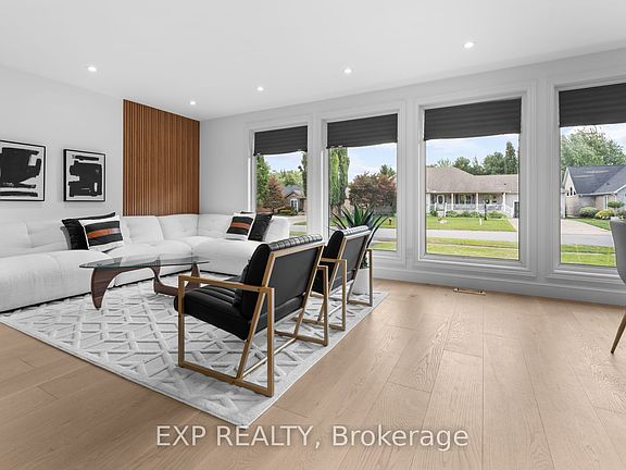 Experience modern living in this fully renovated detached bungalow on a rare 60 x 210 ft lot in the heart of Stamford, Niagara Falls. Thoughtfully redesigned with nearly $200,000 in high-end upgrades, this 3+1 bedroom, 3-bath home combines style, space, and functionality for today's family. The custom kitchen is the showpiece of the home - with quartz counters, Bosch stainless steel appliances, designer cabinetry, and a sunny breakfast nook that overlooks the open-concept living and dining area. Floor-to-ceiling windows flood the main level with natural light and connect seamlessly to your private, oversized backyard - perfect for family gatherings, gardening, or future expansion. The main floor features three generous bedrooms and two spa-inspired bathrooms, including a primary suite with a walk-in closet and frameless glass shower. The fully finished lower level offers additional living space with a separate office or 4th bedroom, a full 3-piece bath, and a large recreation area with a new fireplace - ideal for an in-law setup or teen retreat. Every detail has been carefully curated - from energy-efficient lighting and premium flooring to modern finishes throughout. Located on a quiet, family-friendly street near great schools, parks, and amenities, this move-in-ready bungalow blends luxury, practicality, and value! Don't miss this rare opportunity to own a turnkey home on a massive lot in one of Niagara Falls' most sought-after neighbourhoods.