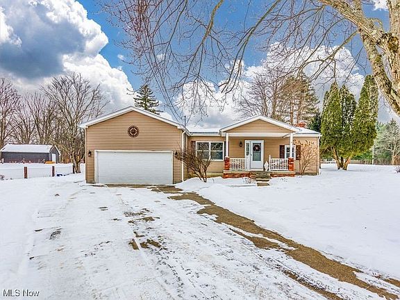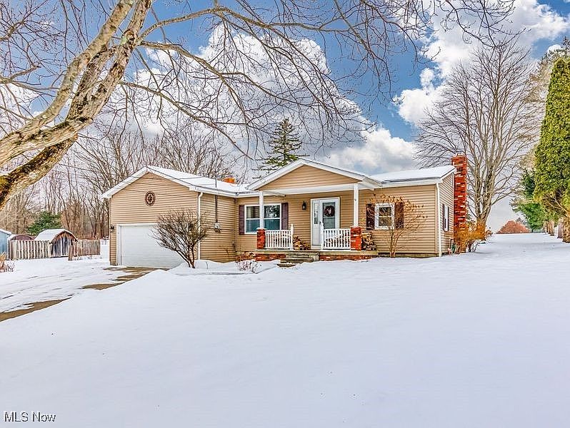 Come see this inviting ranch sitting on 1.56 acres of beautiful land overlooking a stunning pond. Many updates have been taken care of including a new kitchen with hardwood cabinets, new countertops and stainless-steel appliances! Not to mention the beautifully updated full bath! Sit in the great room and enjoy the amazing wood fireplace overlooking the great size deck and 1.56 acres of land! The finished area in the basement comes with a grand wooden bar, new luxury vinyl flooring and plenty of seating, perfect for entertaining. There's a 2 car attached garage and oversized deck. The 20 x 40 pole barn has a concrete floor, electrical service and garage door opener...Perfect place for pig roasts, a gym or shop! Updates include new Furnace 2022, A/C 2019, new sump pump 2024, updated bath and kitchen 2024, Iron Filter 2021, Hot water tank 2015, Roof and Siding 2014, Barn roof 2023. Hudson Schools. Don't wait!