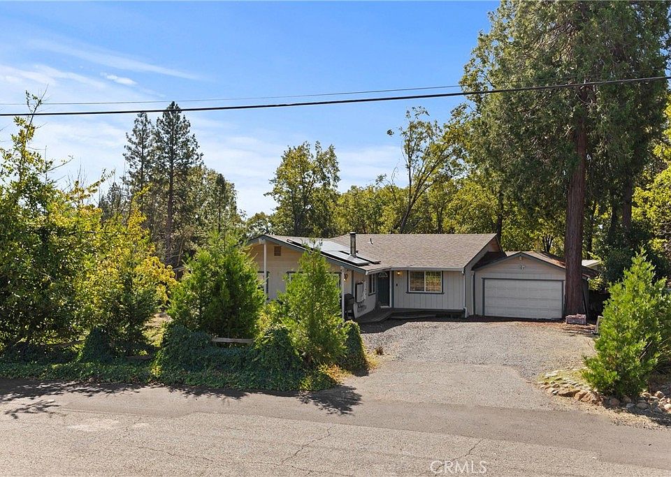 Welcome to this cozy survivor home on a quiet cul-de-sac in lower Magalia! Featuring OWNED solar with a backup battery and the neighboring .23 acre parcel included (totaling .46 acres). Any chef will appreciate the updated kitchen featuring alder cabinets, granite tile countertops, newer stainless steel appliances, and modern can lighting. The kitchen overlooks the family room containing a wood burning fireplace along with a sliding glass door that leads to the front deck. Down the hall is an additional storage closet, the indoor laundry room, the guest bedroom, and primary bedroom. The spacious primary suite features an attached bathroom containing a dual sink vanity with solid surface countertops and walk-in closet. A slider in the primary bedroom leads to a balcony, the perfect place for morning coffee. Off of the second living room is an additional bedroom/office/den as well as the perfect alcove to use as a home office or quiet sitting area with another slider leading to the back deck. Additional features include a whole house fan, attached 2 car garage, dual pane windows, storage shed, updated flooring in living areas, and plenty of room for RV parking.