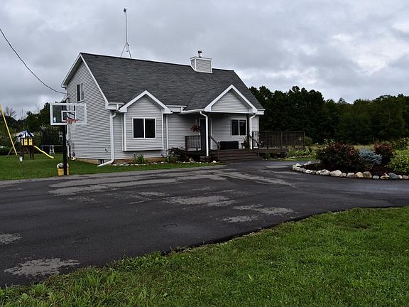 Newer 3 bedroom, two bathroom home situated on a wooded 14.6 acre setting- a hunter's paradise! This setting is perfect for an avid outdoorsman and hobby farmer. Home is updated and perfect for a growing family. Private master suite on the upper level. Living room has a beautiful field stone fireplace. Basement is partially finished with egress window for a potential fourth bedroom. Eat-in kitchen. Home has central air. Wrap-around deck with hot tub. Detached oversized two-car garage. H ome sits back from road, private setting with newly paved circle driveway.