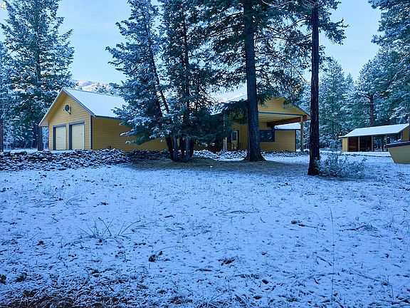 Custom home on over 10 acres outside of Joseph, Oregon. Enjoy this private property with trees and mountain views next to the Joseph Airport. Very private setting with plenty of outdoor space, detached storage shed with potential for a backup generator to be hooked up, and additional covered parking. This custom home has attached garage, two bedrooms, two bathrooms, with office, great living room area, and unfinished basement.