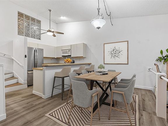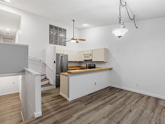 One or more photo(s) has been virtually staged. Welcome to this beautifully maintained 2-bedroom, 2-bathroom end-unit townhouse offering maintenance-free living—and it's not located in a flood zone! The only end unit, 2-bedroom, 2 full bathroom, townhouse available in the community, with no neighbors on one side! This spacious tri-level home features an oversized 1-car garage with abundant storage and a driveway that accommodates multiple vehicles. On the first level, you’ll find a versatile bonus room—perfect for a home office or workout space—along with a washer and dryer and additional storage. The second floor boasts stylish, vinyl plank flooring throughout. The kitchen is equipped with a newer range and refrigerator, butcher block countertops, and a breakfast bar that opens into the dining area. The sunken living room features vaulted ceilings with skylights that fill the space with natural light, a wood-burning fireplace, and access to a screened porch via stacking sliding doors—ideal for relaxing outdoors. Both bedrooms and bathrooms are located on the third floor. The primary suite includes built-in shelving in the closet, a private balcony and an ensuite bathroom with a new sink and vanity. The HOA fee of $648 a month (not $803 that it stated on some websites) covers the heated pool, exterior maintenance, reserves fund, roof, grounds maintenance, sewer, water, trash, cable, internet, and private road—truly low-maintenance living! Seller will pay part, or all, of the remaining special roof assessment, depending on an offer. Work has begun on putting new, exterior siding on the buildings. The community is directly across the street from Forbes Recreation Center and Helen Howarth Community Park, featuring a dog park, playgrounds, picnic pavilions, ball fields, and walking/horse trails. It’s also conveniently located near I-275, restaurants & shopping; two international airports; award-winning Gulf beaches; and the vibrant downtowns of St. Petersburg & Tampa. Don’t miss your chance to own this turnkey townhouse in a prime location with everything you need right at your doorstep!