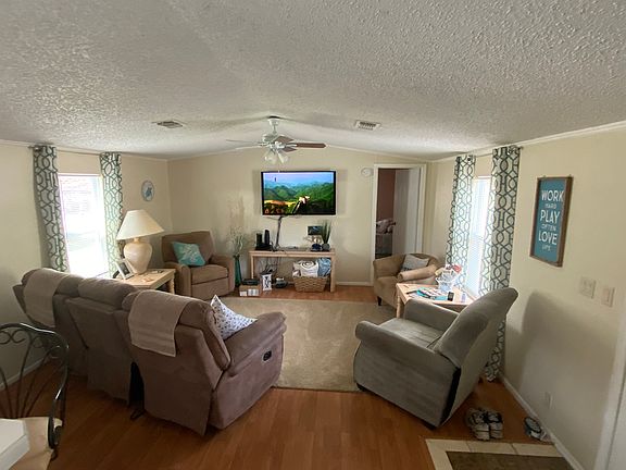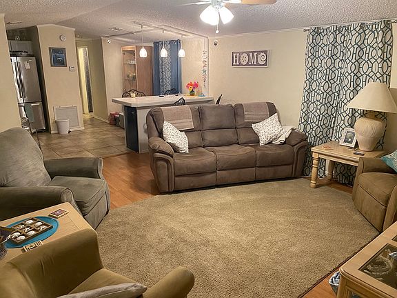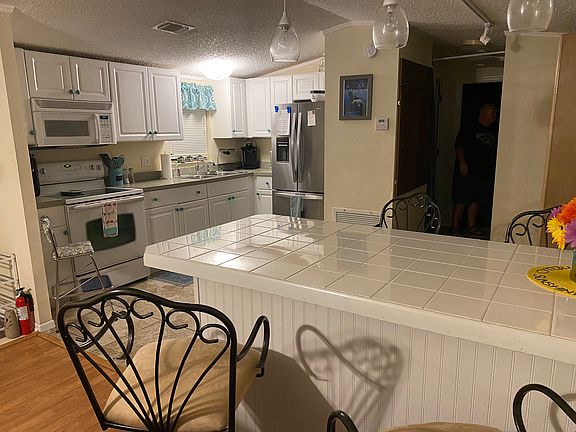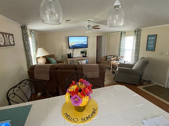 Available 2025 Cute! 2 Bedroom, 2 Bath Nice size Mobile Home. Layout features baths & Bedrooms on each end for privacy, Center Liv. room & kitchen with bar. On 1/2 Acre Lot, Nice back yard with covered Patio Includes washer and dryer, electric w/$150 cap and water w/ $50 cap, Internet and Lawn Care! Available Monthly May - November