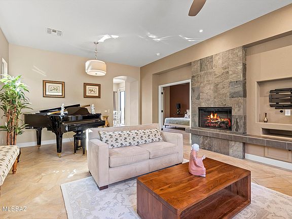 Slate gas fireplaceExtended brick paver patioPrimary suiteRemodeled bathroomWhole house filtration systemCatalina mountain viewsNatural light