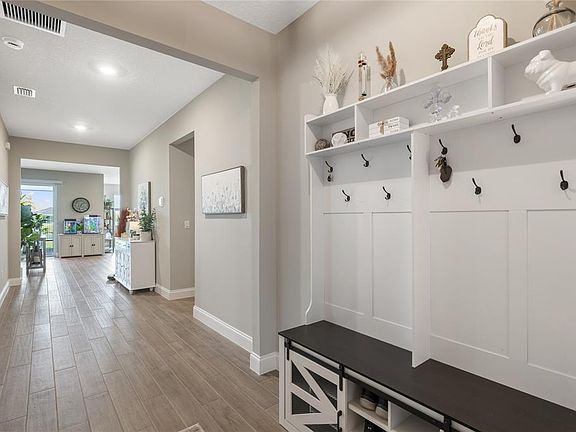 Barely lived in 2025 Coral floor plan in Brystol at Wylder! This 4-bedroom, 2.5-bath waterfront home with a 3-car garage offers an ideal split floorplan. Enjoy quartz countertops, soft-close cabinets, and a designer kitchen with a professional appliance package and stylish backsplash. Primary suite features a massive super-shower and walk-in closet, while the guest wing adds privacy with a sliding barn door. Relax on the screened lanai overlooking the lake through a wide picture window screen. All windows are impact-resistant. Added upgrades include a full fence, gutters, blinds, fans, an accent wall, and upgraded lighting throughout (you don't get that buying new)! Full builder warranties convey. Better than new and priced below the original purchase—move-in ready. Furniture Negotiable