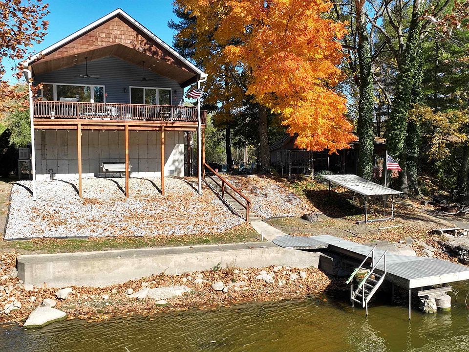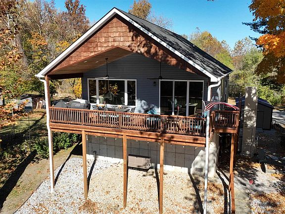 Nestled along the scenic Tippecanoe River, this stunning river cottage redefines waterfront luxury. From the moment you arrive, every detail speaks of quality and care—beginning with a brand-new $15,000 dock featuring steel beam reinforcements, Trex decking, and a poured concrete seawall. A $42,000 vertical platform lift and a $12,000 full-house Generac generator with a 200-amp service and automatic transfer switch ensure both convenience and peace of mind. Step inside to discover a beautifully appointed interior with top-of-the-line appliances, including a Wolf dual-fuel range, Thermador refrigerator and microwave, Miele dishwasher, and a stainless beverage center. The family room centers around a Lopi natural gas fireplace stove, adding warmth and charm. Ceramic tile floors run throughout, complemented by hardwood flooring in the bedrooms. Shiplap accent walls and whitewashed boxcar wood ceilings lend a cozy, modern-rustic feel. This home is offered partially furnished, featuring a La-Z-Boy sectional, vintage dining set, and brand-new solid hardwood king and queen beds with built-in storage. The covered cedar deck offers breathtaking views of the Tippecanoe River, complete with patio furniture, a fire table, an XL Green Egg, and a Blackstone grill—perfect for entertaining or relaxing. Built to impeccable standards, the home includes 12-foot poured concrete walls with flood vents, ensuring full code compliance. The oversized two-car garage (1,020 sq. ft.) features an 80,000 BTU natural gas hanging furnace, plumbing with an icemaker and wash tub, and a new whole-house water softener. Outside, enjoy a built-in fire pit surrounded by Adirondack Polywood chairs and a 12 x 22 mini barn valued at $10,000 for additional storage. If you are seeking refined comfort, durability, and an unmatched riverside lifestyle—this riverfront retreat is your perfect home