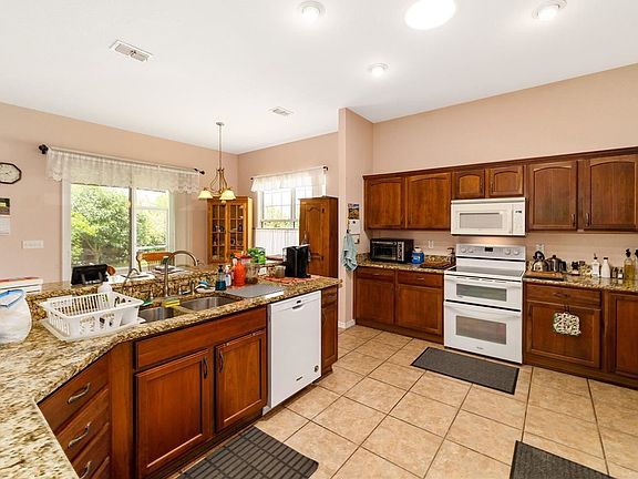 Why wait months for a new build when you can have an almost-new home ready to move in? Room to roam in this large, open floor plan home! Large foyer to welcome all your guests! Kitchen big enough for everyone to help without rubbing elbows! Granite countertops and tons of cabinet space, large pantry, almost new appliances (2 yrs) including a DOUBLE OVEN! Master suite has his/hers closets, light and bright master bath with his/hers vanities! Step out into the screened lanai with remote control shades to enjoy morning coffee or evening relaxation! Lennox AC system installed approx 3 years ago,with a transferable warranty (7 yrs left). within the last two years - granite countertops, carpets! Water heater replaced 2020. Water filtration system and reverse osmosis in kitchen. Ceiling fans in all rooms. Freshly painted exterior (July 2021) makes this home sparkle! Property has irrigation system as well!