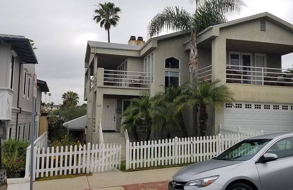 This property is a duplex. The unit available for rent is a large and spacious two-story rental that is comprised of 3 bedrooms with 3 bathrooms, with a dining room, living room, laundry room, a large balcony, and a two car garage with direct unit access. The unit includes hardwood floors, carpet,, two (2) fireplaces, quartz kitchen counter tops with upgraded cabinets and back splash, and an ocean view. Appliances include a dishwasher and a stainless steel stove top, oven & refrigerator. This rental is about 7 blocks away from the beach and close to tons of shopping.