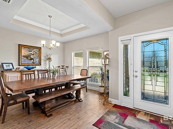 Priced to sell and move-in ready! Live close to everything the Gulf Coast has to offer in the sought-after Parish Lakes neighborhood of Foley. Just two miles from Tanger Outlets and OWA, and only 10 miles from the white-sand beaches of Gulf Shores, this Gold Fortified home puts shopping, dining, schools, and outdoor adventures right at your fingertips. With the Gulf Shores International Airport less than 20 minutes away, weekend getaways are effortless! Inside, the spacious split floor plan offers 4 bedrooms, 2.5 bathrooms, and a bonus room, which can be utilized as an office or a 5th bedroom! The living room’s cozy fireplace and double tray ceiling create an inviting spot to relax, while the kitchen—complete with stainless steel appliances, gas stove, granite countertops, a tiled backsplash, breakfast bar, and sunny breakfast area—makes everyday cooking a pleasure. A formal dining room is ready for holiday feasts or dinner parties. The primary suite is a private retreat with a tray ceiling and an ensuite bath featuring a double vanity, granite countertops, garden tub, beautifully tiled walk-in shower, an added linen closet, and a walk-in closet with custom shelving. Four additional bedrooms provide flexibility for guests, hobbies, or a home office, including one with double doors. Enjoy the outdoors on the back porch with an extended patio overlooking the fully fenced backyard with gates on both sides, perfect for morning coffee or evening cookouts. A large storage shed with two lofts for extra storage provides plenty of space to keep everything organized. Additional upgrades include a new front door installed in 2023 and the addition of ceiling fans in all of the bedrooms and back porch. A laundry room, side entry attached double garage with a large floored attic, and hurricane window coverings complete this home. To make your move even easier, the sellers are including a one-year home warranty! Buyer to verify all information during due diligence.