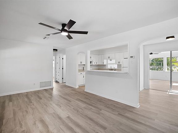 Welcome to 637 Belltree Street, Dunedin! This freshly renovated 2-bedroom, 1.5-bath home with a versatile bonus sunroom is located in the heart of Dunedin—walking distance or a quick golf cart ride to everything Downtown has to offer. From the moment you arrive, the half-circle drive, double gate for boat/RV parking, and one-car garage set the stage for convenience and flexibility. A charming screened front porch invites you to sip morning coffee or enjoy a good book in the breeze. Inside, you’ll find fresh paint, new vinyl plank flooring, and an open kitchen with white cabinets and newer windows, giving the home a light and airy feel. The retro-chic full bath features stunning teal tile, an updated vanity, and a tub/shower combo, while the half bath adds extra function for guests. Modern updates include new lighting, hardware, and fixtures throughout. Step out back and envision your own private oasis—there’s plenty of room for a future pool, and the lush landscaping with palms and jasmine-covered trellis creates a serene retreat. A brand-new vinyl fence encloses the yard for privacy, while a patio offers the perfect spot for outdoor dining. Practical updates provide peace of mind: a 2017 A/C system, a new garage door installed in 2022, a brand-new roof to be installed before closing, and a termite warranty will be provided at closing. Investment & Future Potential: This property is zoned multifamily, allowing the possibility of converting into a duplex. For those dreaming of a boutique business, you may also apply for bed-and-breakfast zoning if this home is used as your primary residence—opening the door to income potential in one of Dunedin’s most desirable areas. Location is everything here—you can walk to the Blue Jays Stadium, bike the Pinellas Trail, stroll to Edgewater Drive, or golf cart to Downtown Dunedin’s shops, restaurants, and waterfront. Whether you’re looking for a primary residence, vacation home, or investment opportunity, this Dunedin property has it all—charm, upgrades, and unmatched versatility.