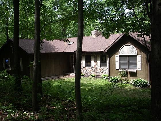 GREAT HOME! Wonderful private serene setting. Great room w/vaulted ceiling, stone fireplace, sliding doors that open to deck. new kitchen w/hardwood floors. Master bedroom w/door to deck and walk-in closet. Master bath w/skylight, ceramic tile, tub and shower. FR w/woodstove, walkout, full bath and more. Great yard w/2 sheds and playground equipment. Home warranty!