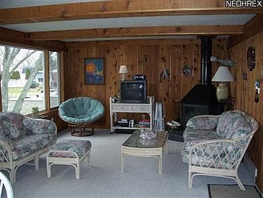 Cedar Point Chausee; three bedroom, two bath home on beautiful Lake Erie to Sandusky Bay lot with private terrace and two private sandy beaches that go on for miles. Dockage available on quiet Sandusky Bay. Four season sunroom with expansive views of Sandusky Bay with free standing wood burner w/slate hearth. Open floor plan. Cathedral ceilings. Plenty of private space for everyone. Neutral colors throughout. Most rooms freshly painted. New carpeting. Partial crawl with vapor barrier. Re-roofed in 2000. This home has the capability of adding on extra bedrooms/baths - lots of space! Oversized 2-1/2 car garage and separate workshop area with outdoor access. The lot this home sits on is a premier lot with plenty of room for additions to the house and plenty of space for play areas. Also you are in the heart of vacationland you can bike, walk or drive to Cedar Point Amusement Park, Lake Erie Islands are minutes away by boat or car & more. Great restaurants and shopping.