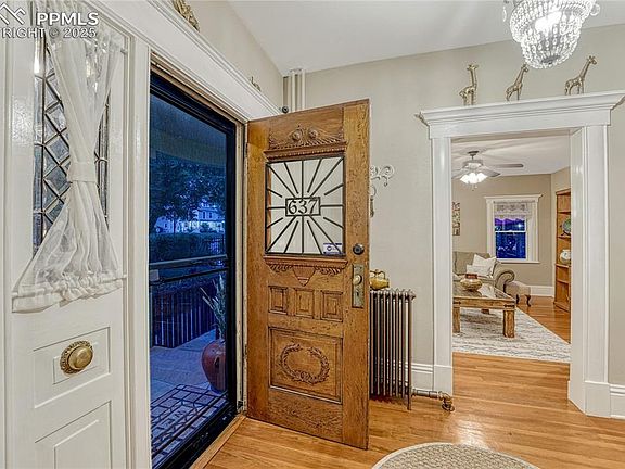 Can you imagine living in a home rich with Colorado Springs History, perched on the edge of Shooks Run Trail? The Mid Shooks Run neighborhood is replete with parks, walking/bike trails, fine eateries, & just blocks from downtown with its Art, Cultural Events, & Museums. *Shooks Run Park*Pikes Peak Greenway trail*Shadow Lake at Monument Valley Park*Horticultural Art Society Gardens*Switchback Coffee Roasters*Stellina Pizza Café (member of the Blue Star Group of fine eateries) *Fine Arts Center*Colorado College *Nikola Tesla Laboratory Historical Marker. Imagine enjoying 3 days of Labor Day Lift Off Balloons floating overhead to land in Memorial Park just blocks away! This unique home has a rooftop garden with a tree-framed Pikes Peak View as well as custom stamped walkways & patios surrounded by day lilies & other perennials. This historical home has 9 custom-built radiators to include a semi-curved version specifically built for the turret room, each with a unique humidifier made of copper or ceramics! This uncommon home was built in 1888 by the once existing Sante Fe Railroad tracks (now Shooks Run Trail) to lure a medical doctor to treat workers & passengers in the newly founded Colorado Springs. His stables (located on the south end of the home) stretched down to the train depot on El Paso & Platte. In the 1920’s a subsequent owner of 637 E Boulder was the head chef of the Antlers Hotel (governed by the Broadmoor Hotel), whose daughter attended Colorado College & became a teacher at Garfield School on Willamette. This home has historical features of the time called pediments, which hold antique brass ornaments signifying wealth & status at the turn of the century. 637 East Boulder captures the beauty of a regal Victorian home blocks from downtown with access to the Arts, Culture, & people that make Colorado Springs a uniquely western pioneer city. The extensive list of updates & their costs will be available on the home’s flyer when you Come Take a Look Inside!