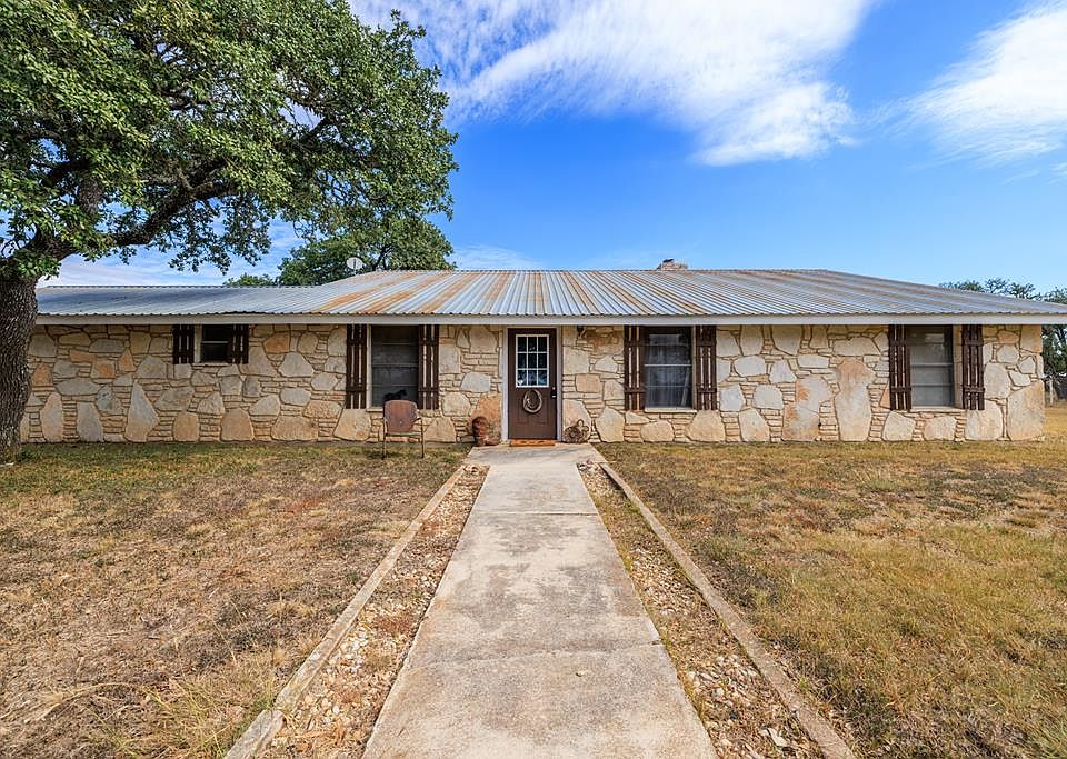 Discover the perfect blend of country living and modern convenience with this gently rolling, fully perimeter-fenced 16.35-acre property boasting frontage on FM 479 and quick access to IH-10 and Kerrville. The property features a warm and inviting 3-bedroom, 2-bath ranch-style home with flagstone veneer, a metal roof, and an attached 2-car garage. Inside, enjoy a spacious open-concept living area and a cozy den with a fireplace insert—ideal for relaxing evenings. Step outside to a fenced yard, perfect for pets or gardening, and take advantage of the barn/workshop for hobbies, storage, or small-scale agricultural use. A set of corrals adds versatility, making this property great for livestock enthusiasts. Whether you're seeking a weekend retreat, hobby farm, or full-time residence, this well-located property offers country charm just minutes from town amenities.